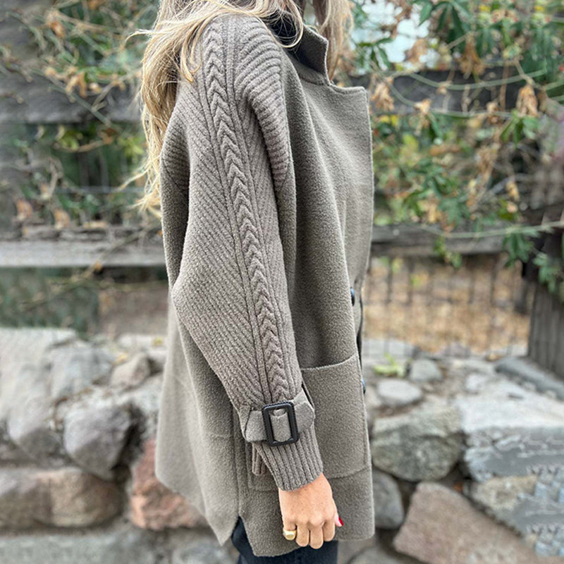 ADJUSTABLE SLEEVE DESIGN – The coat features belt buckle tightening on the sleeves, allowing wearers to adjust the fit for comfort and style. This detail adds structure to the overall silhouette while offering flexibility to create a more fitted or relaxed look. The design not only enhances the visual appeal but also provides practical functionality in adapting to different weather conditions.